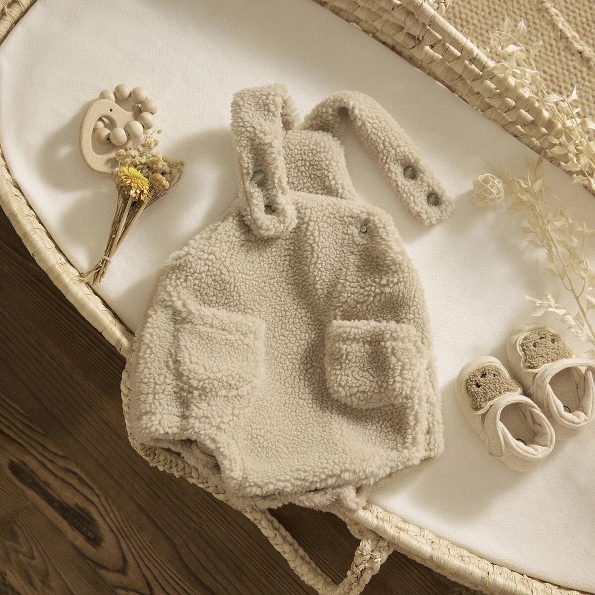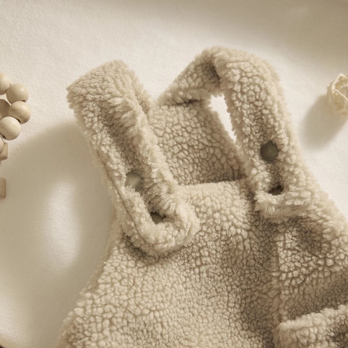 モコモコ感がたまらなく、このロンパースにはポケットも付いていて、とても可愛いらしいです。