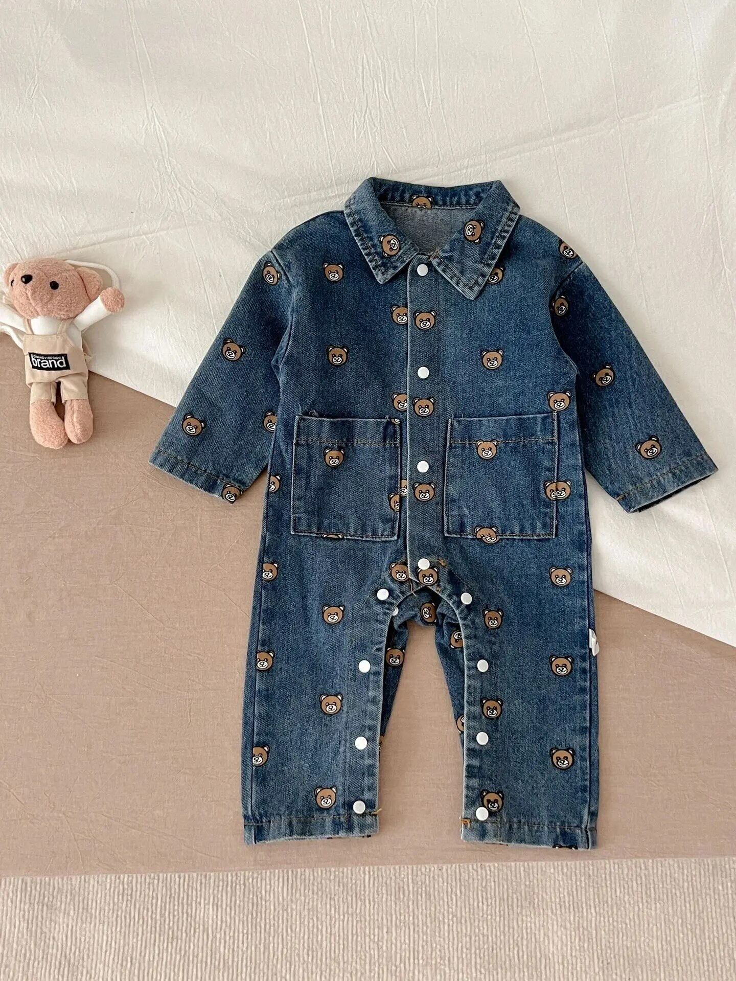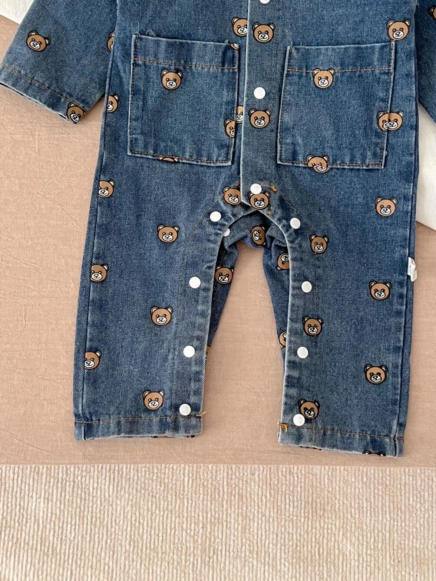 思わず抱きしめたくなる可愛らしい男の子向けくま柄デニム風オーバーオールが新登場しました!