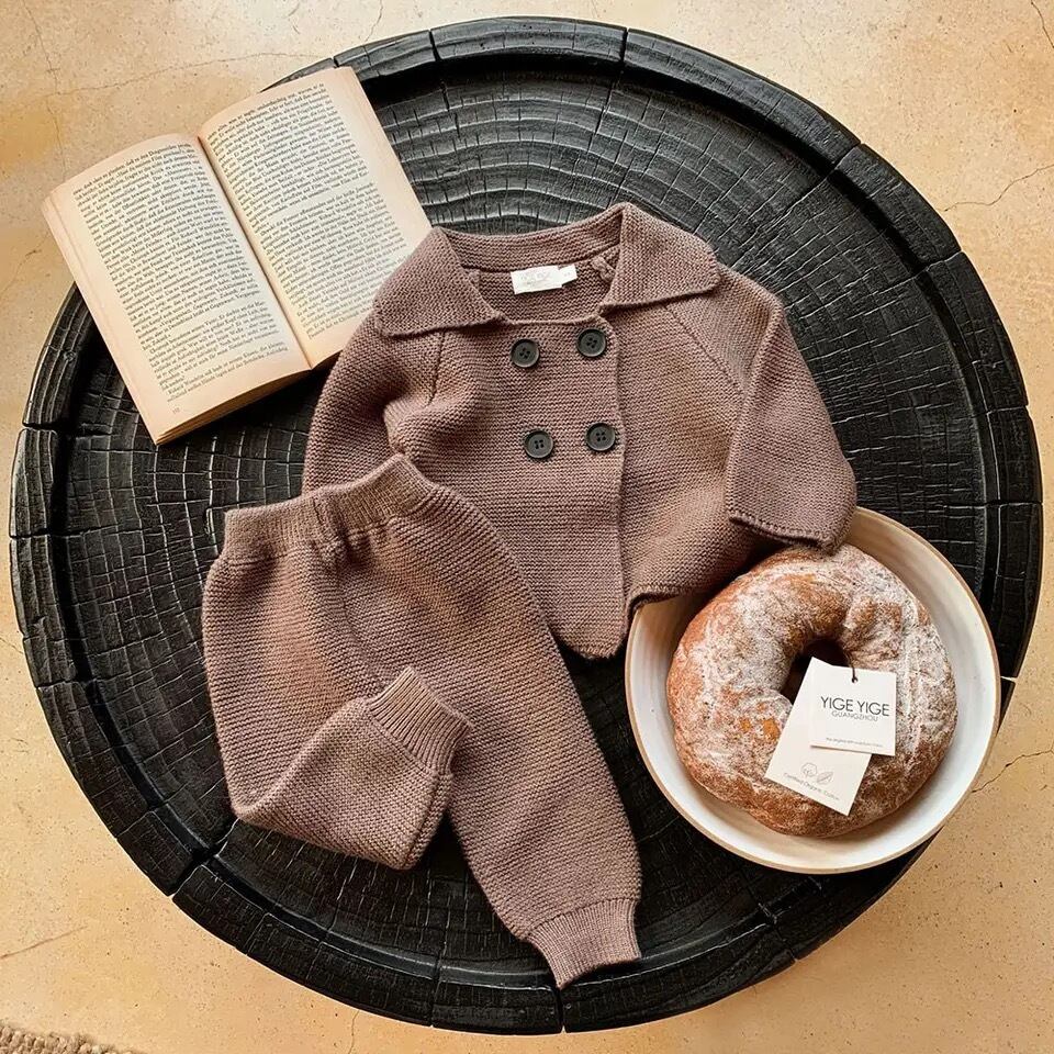 シックな長袖カーディガンとパンツのベビー服セット