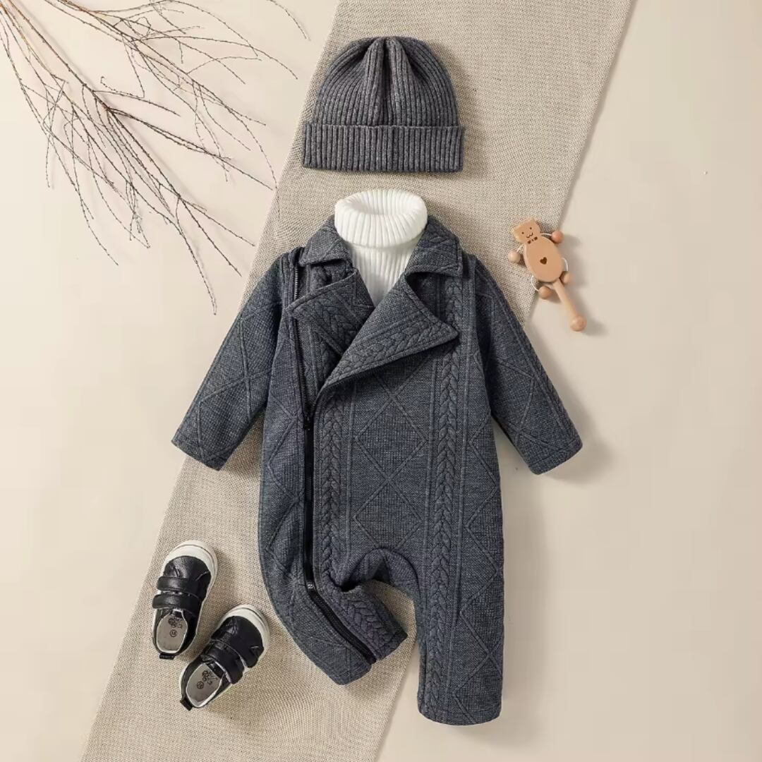 男の子のモノクロ長袖ジッパー付きストリートウェアのご紹介です!
