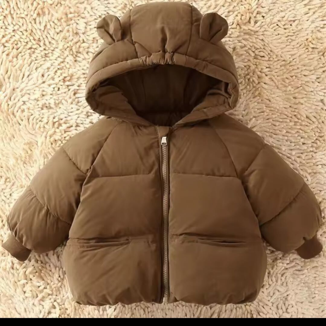 韓国子供服のクマ耳フード付きダウンジャケット