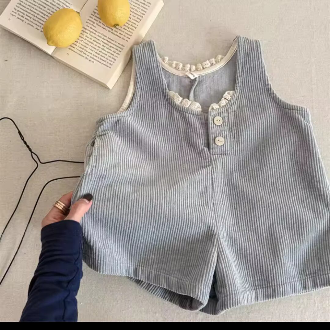 女の子のレースノースリーブサスペンダーパンツのご紹介です!